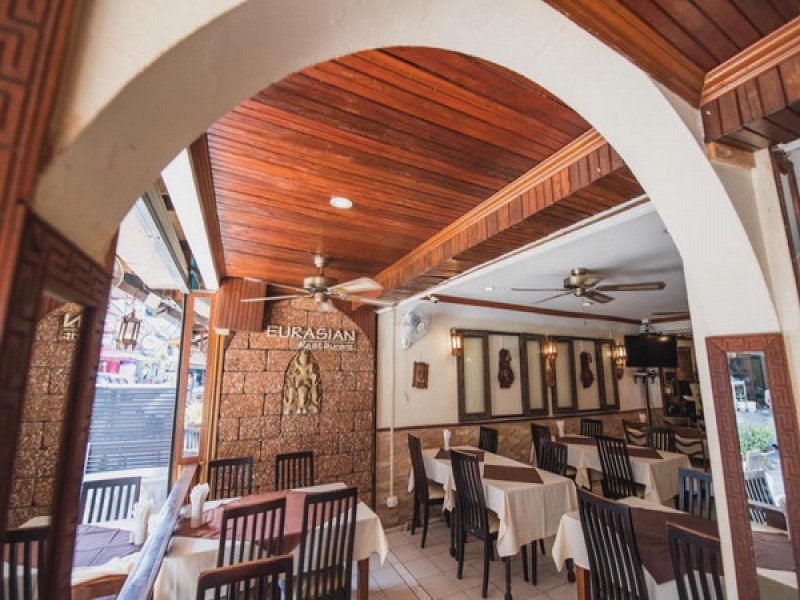 Eurasian Restaurant offers a unique dining experience in a Thai-style setting, serving authentic Thai and international dishes such as chicken satay and Pad Thai. Located near Bangla Road in Patong, it is ideal for families and groups looking to enjoy breakfast, lunch, and dinner together.
