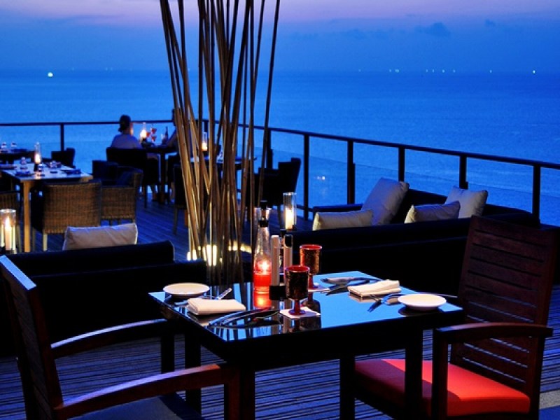 Diavolo Restaurant at Paresa Resort Phuket offers breathtaking views of the Andaman Sea and serves a variety of Thai and Italian dishes for lunch and dinner, making it an ideal spot for romantic or special occasion dinners.