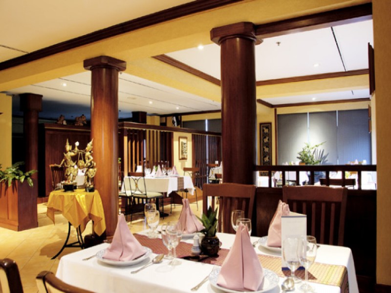 Fueng Fah Restaurant offers authentic Thai cuisine in a classic dining setting at the Royal Paradise Hotel & Spa in Patong. Guests can customize their spice level for a personalized dining experience.