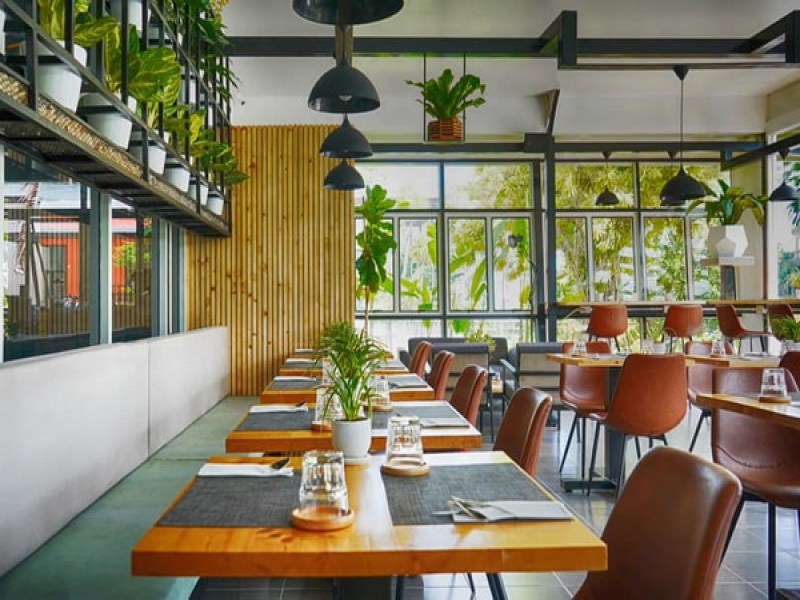 Hana Cafe+Bar in Phuket Town offers a versatile space for casual meetups with tea and coffee, dining with Thai and pasta dishes, and social gatherings with beers and cocktails, all in a bright and modern setting.
