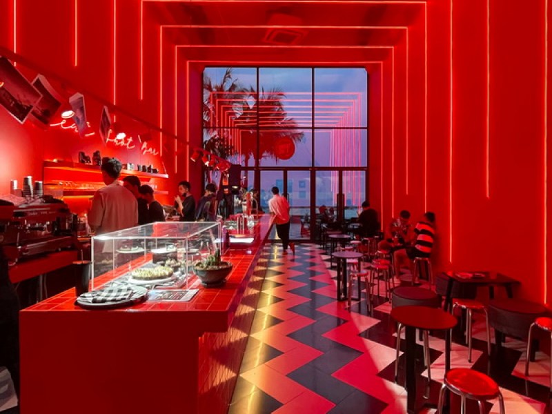 Great Shot Bar Phuket, also known as the red cafe, offers a vibrant and energizing atmosphere with a seafront location at the chic Foto Hotel on Sirey Island. Enjoy unique drinks like Focusing Drink and F-stop, along with a variety of sweets and desserts, just a short drive from downtown Phuket.