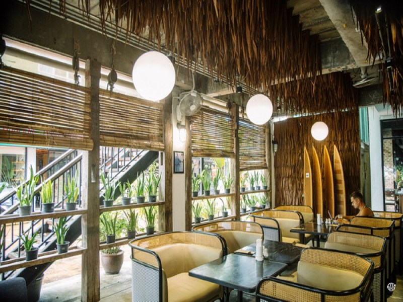 Kim's Café & Bistro in Phuket offers a cozy atmosphere and a varied menu including homemade cakes, coffee, and savory dishes like tenderloin steak and pasta. Located in Kathu, the café boasts a bright indoor area and a rustic outdoor space, making it a perfect spot for a relaxing meal or snack.