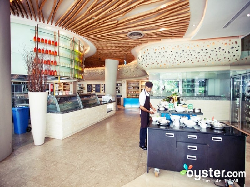 The Loca Vore is a luxurious lagoon view restaurant located in the Renaissance Phuket Resort & Spa, offering buffet-style dining with daily changing themes and menus, as well as a selection of items from the menu. The restaurant's impressive interior features white pillars, wood strip ceilings, and an open plan kitchen.