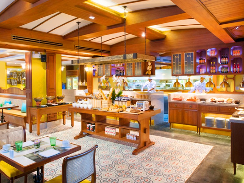 Laguna Cafe Restaurant offers a beautiful and casual dining experience at the luxury Dusit Thani Laguna Phuket Hotel, serving classic dishes from around the world in a Thai-style setting with indoor and outdoor seating options.