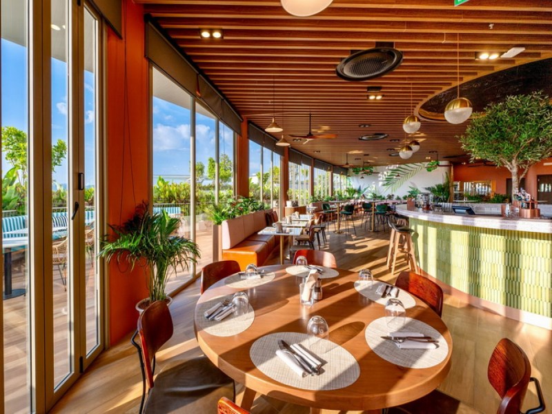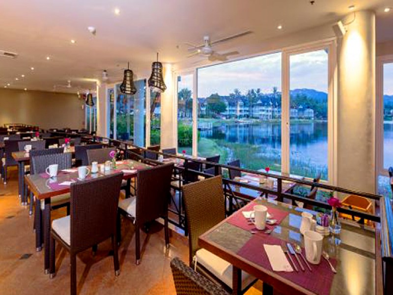 The Market Place at Angsana Laguna Phuket offers buffet-style breakfast, lunch, and dinner with a wide selection of Asian fusion, International, and local Thai dishes in a casual dining setting overlooking a scenic lagoon. Guests can enjoy meals indoors in an air-conditioned space or outdoors on a raised terrace with a beautiful view.