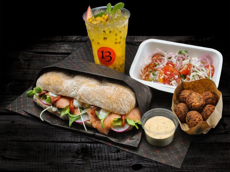 Lucky 13 Sandwich Bar & Coffee Shop, located near the Shell Museum on Viset Road, offers a variety of hot and cold beverages, sandwiches made with a selection of breads, breakfast items, healthy salads, and free WiFi. Open 24/7, they also serve detox smoothies and juices like apple and beetroot.