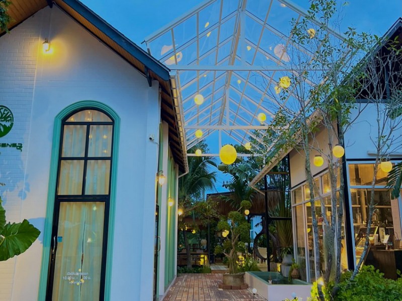 Take and Wake is a minimalist cafe located in a green garden near Laguna and Layan Beach, offering a variety of Thai and Western cuisines, refreshing drinks, and beautiful cakes. Customers can enjoy their meal inside the cafe or in the garden with lovely decorations.