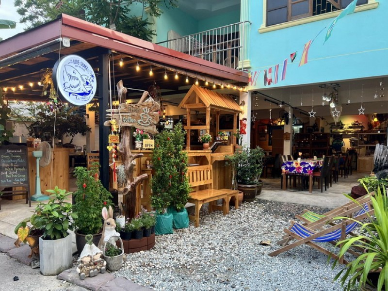 The Blue Shark Restaurant offers a charming open-air dining experience with a delightful menu of Thai favorites, set in a child-friendly environment perfect for families seeking a relaxing meal in Kata.