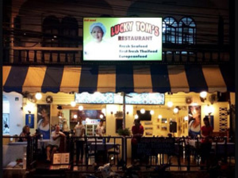 Lucky Tom's Restaurant Kata, also known as Ma's Home Kitchen, offers a diverse menu featuring mainly Thai and German cuisine at reasonable prices with generous portions. The family-run establishment provides a simple yet inviting dining experience with indoor and outdoor seating options.