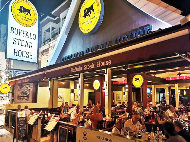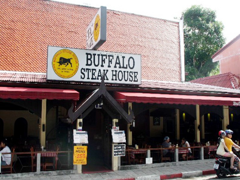 The Buffalo Steak House @Kata Dino is a centrally located restaurant offering excellent imported steaks, International and Thai dishes, and a buffet salad bar in a comfortable and friendly atmosphere.