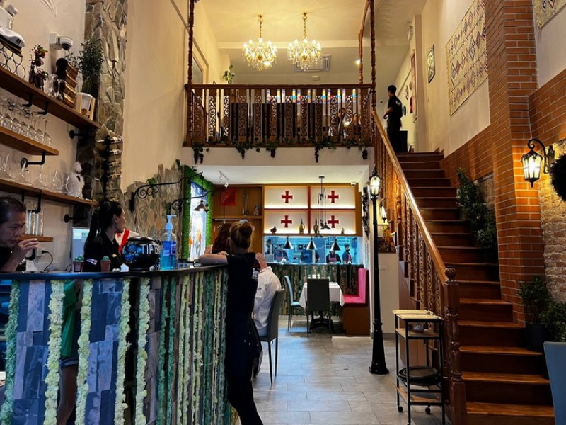 Deda Batumi Restaurant in Phuket Old Town offers a diverse menu of authentic Georgian cuisine, including classic dishes like Satsivi, khachapuri, and BBQ, making it a must-visit for those looking to explore the flavors of Georgia in Thailand.