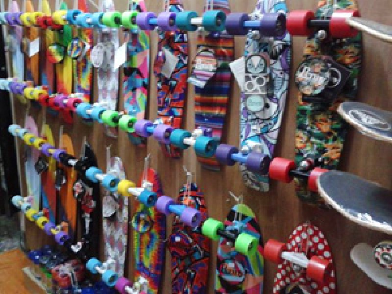 A surf shop offering a wide range of surfboards, paddleboards, skateboards, and accessories, as well as surfing lessons and rentals for various water sports equipment.
