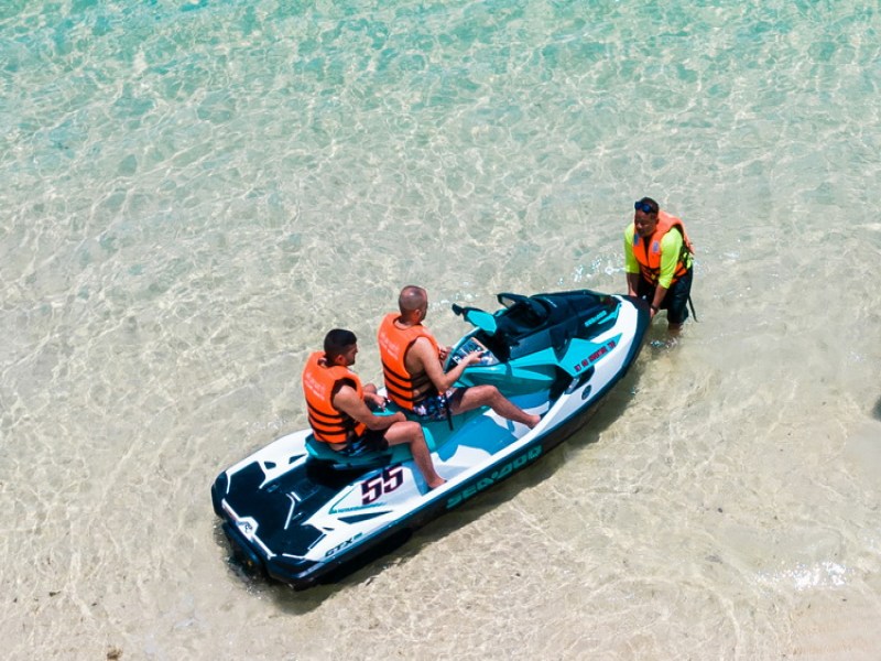 Experience an exhilarating Jet Ski Adventure Trip in Phuket, exploring the stunning Andaman Sea and mangrove forests with modern jet skis and experienced guides. Enjoy snorkelling, swimming, and breathtaking views of Coral Island and Racha Island, making it a memorable experience for all skill levels and group sizes.