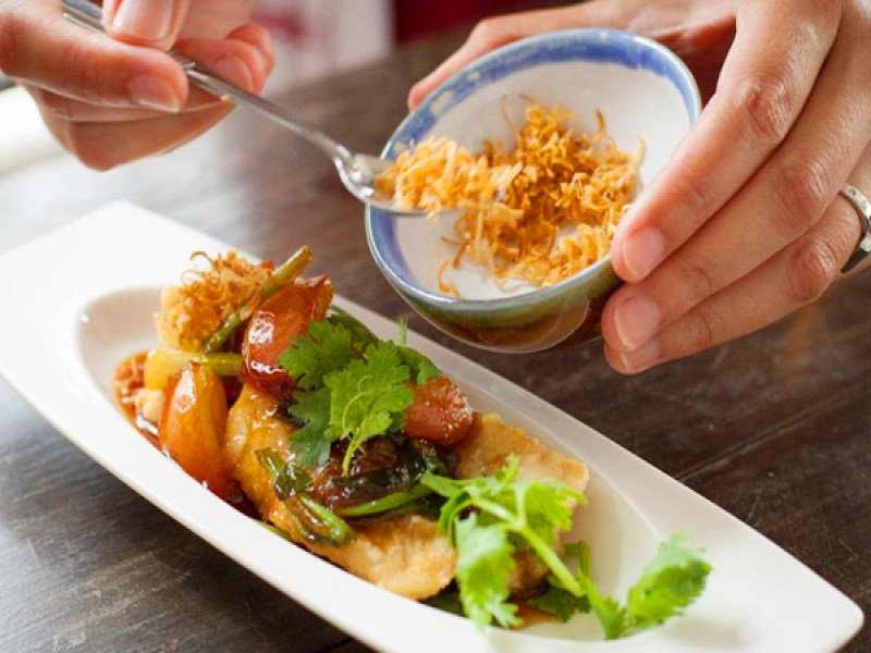 The Pum Thai Restaurant & Cooking School offers traditional Thai cuisine with a modern twist, using fresh ingredients and offering cooking classes for all skill levels. With a vibrant orange theme, the restaurant, bar, and cooking school is located in Patong Beach, with additional branches in Chiang Mai and Phi Island.